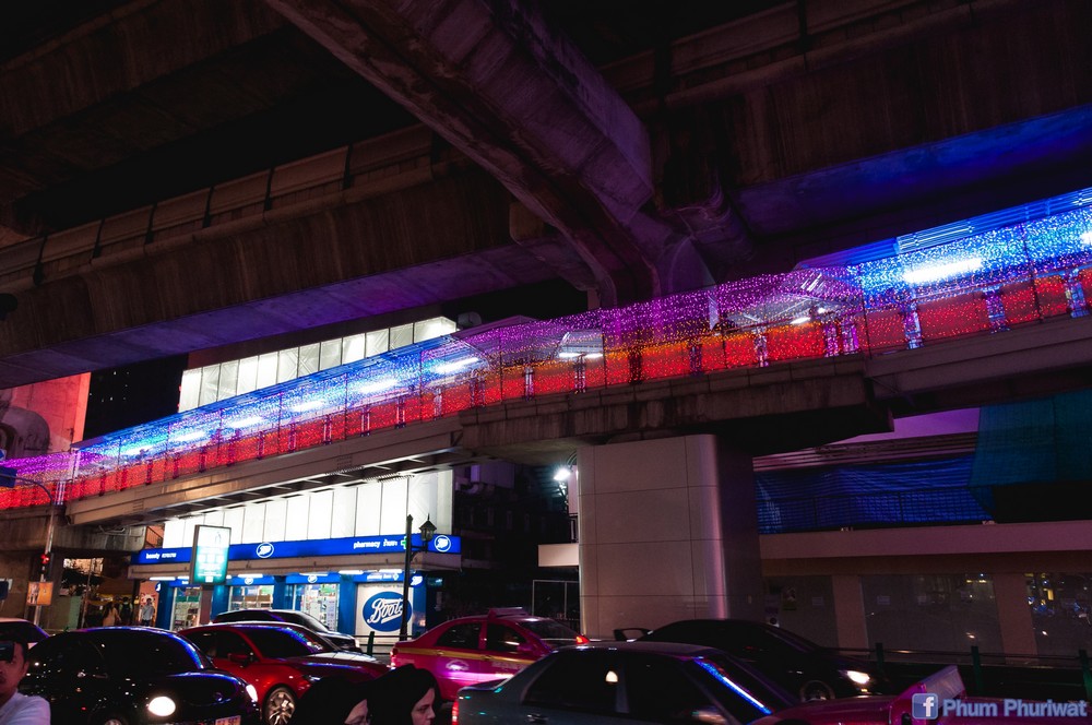 มีการประดับไฟทั้งสองข้างทาง ตั้งแต่ทางเดินเชื่อมต่อระหว่างสถานีสยาม ถึงสถานีชิดลม ประดับไฟทั้งสองข้างทาง