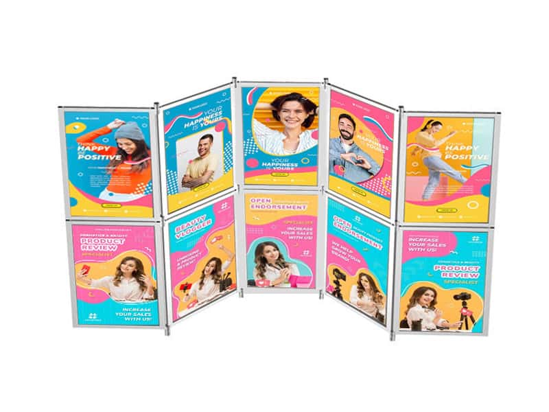 These systems use magnetic or clip-on mechanisms for quick assembly and vibrant large-format graphics.